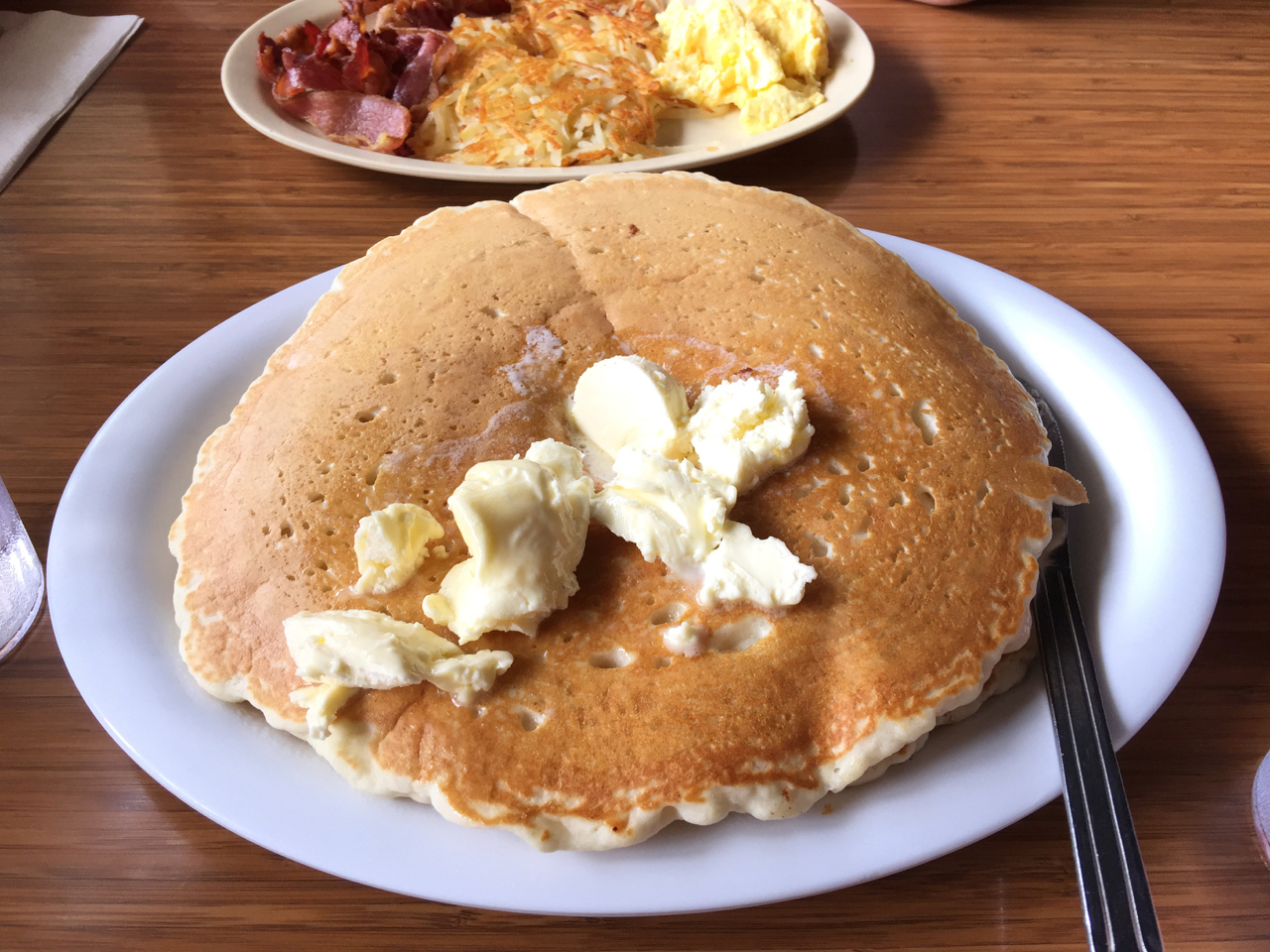 If you are near Hilo, HI, and want some great breakfast and lunch fair, head to Hawaiian Style Cafe. The Loco Moco was great, and this giant pancake was a side dish. Everyone was leaving with doggy bags.